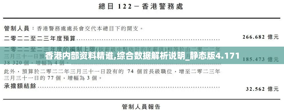 随着信息技术的发展,数据资源变得愈发珍贵。香港作为全球重要的经济、贸易和金融中心之一,其内部资料精细和综合数据的解析尤为重要。本文为静态版4.171,旨在详细分析香港内部资料精用和综合数据解析的意义及方法。