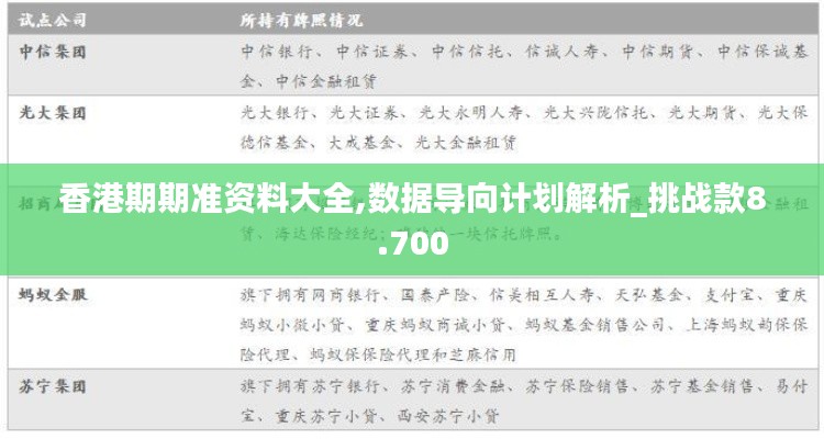 “香港期期准资料大全,数据导向计划解析”为澳门特别行政区推出的一项全新的资料大全,旨在为各界人士提供有关香港的政策数据与分析,以便深化对澳门与香港关系的理解。本文将对澳门的“挑战款8.700”进行综合解析,从而为澳门与香港未来的合作发展提供参考方向。