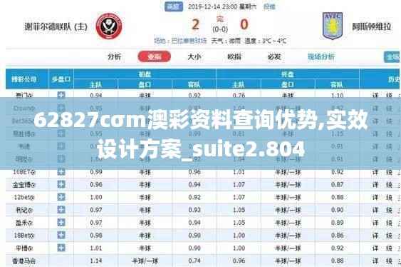 62827cσm澳彩资料查询以其丰富的数据资源、实时更新的特性、深度分析能力及用户定制服务等多方面优势,成为澳彩市场中的一项重要工具。通过使用这一工具,用户可以更加精准地把握赛事赔率变化,合理规避投资风险,并提升自身的盈利能力。62827cσm澳彩资料查询的实效设计方案Suite2.804无疑为用户提供了一个综合而高效的解决方案,其价值不仅在于帮您获取和分析数据,更多的是帮您以更科学更有成效的方式进行澳彩投资。