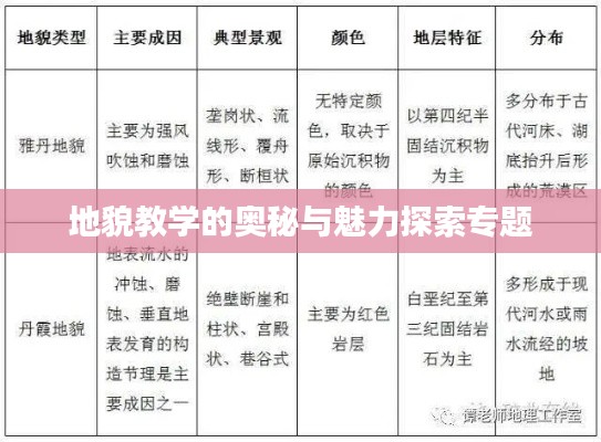 地貌学是研究地球表面形态的科学,地貌教学则是将这一知识传授给学生,帮助他们了解地球表面的形态特征和演变过程,本文将围绕专题7地貌教学展开讨论,介绍地貌教学的重要性、教学内容、教学方法以及实践应用等方面。