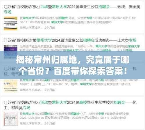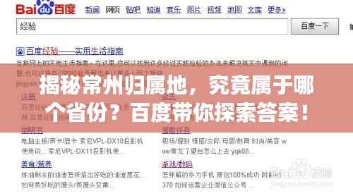 在信息爆炸的时代,我们依赖互联网搜索引擎获取各种知识,我们将聚焦于一个常见的问题:常州属于哪个省?通过百度一下,揭示这个美丽城市的归属地。