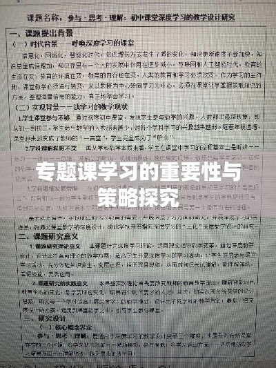 是学生深化知识理解、拓展学习领域、提升综合素质的重要途径,专题课程通常涵盖了某一领域的核心知识,能够帮助学生构建完整的知识体系,提高解决问题的能力,在当前教育背景下,如何有效学习专题课内容成为教师和学生共同关注的焦点,本文将探讨学习专题课内容的重要性及其实践策略。