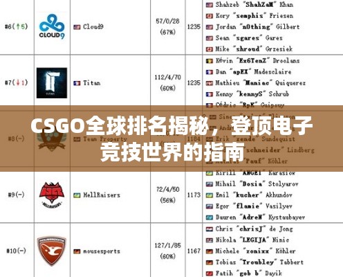 转载请注明来自深圳市鹏腾电子发展有限公司,本文标题:《CSGO全球排名揭秘,登顶电子竞技世界的指南》