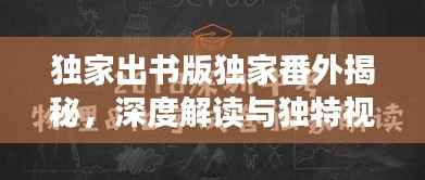 随着文化产业的繁荣发展,书籍作为人类智慧的结晶,其出版形式与内容的创新也日益丰富多样,在众多出版物中,“独家出书版番外”这一概念逐渐受到广泛关注,本文将围绕这一主题,从深度解读与独特视角两方面展开探讨。