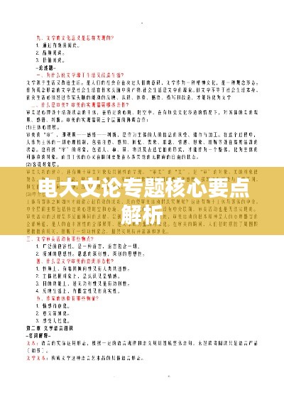 电大文论是指广播电视大学在文学领域的研究与探讨,它涵盖了文学理论、文学批评、文学史等多个方面,旨在培养具有文学素养和批判性思维的学生,电大文论专题旨在帮助学生深入理解文学的本质和内涵,提高文学鉴赏能力和批评能力。