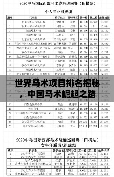 近年来,马术运动在全球范围内持续发展,各国之间的竞技水平不断提升,作为世界上的人口大国,中国在马术项目上的表现备受关注,本文将探讨世界马术项目的排名以及中国在这一领域的发展状况。