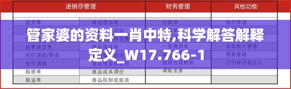 那么,管家婆的资料一肖中特究竟是什么?它如何成为科学解答和定义中不可或缺的一部分?让我们从管家婆的资料管理核心技能开始,逐步揭开这个神秘面纱。