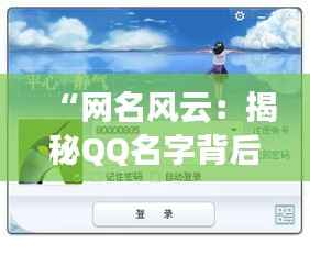 在数字化时代的浪潮下,QQ作为一款老牌社交软件,依然在年轻群体中保持着旺盛的生命力。而在这片虚拟的社交江湖中,QQ名字无疑成为了每个人独特的“门面”。一个好的QQ名字不仅能吸引眼球,更是个人性格、品味甚至社交态度的缩影。今天,我们就来深入探讨那些热门QQ名字背后的故事,揭秘它们如何在网络世界中掀起一场又一场的风云。