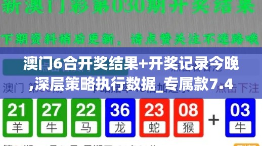 澳门6合彩是一种非常受欢迎的彩票游戏,在澳门特区非常流行,成为了博彩爱好者们茶余饭后的热门话题。今晚的澳门6合彩开奖结果备受关注,因为它不仅关系到众多彩民的财富均衡,也吸引了无数彩民的投资和关注度。那么,今晚澳门6合彩的开奖结果是什么?开奖记录又是如何的呢?接下来,我们将为大家详细解读澳门6合彩开奖结果的深层策略执行数据,以及提供一些专属款7.402的相关信息。